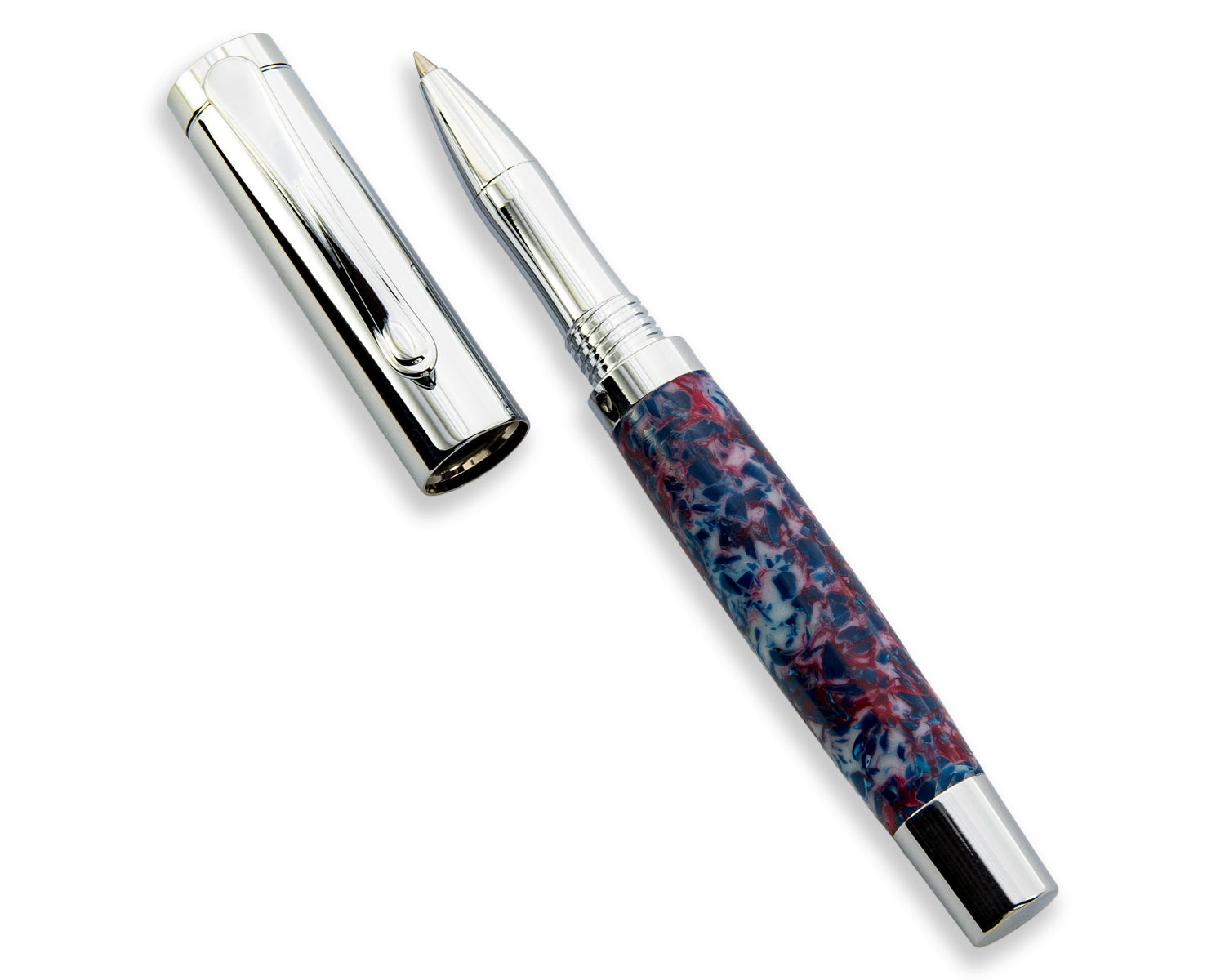 The pen hardware is all chrome plated and comes equipped with a premium Schmidt 5888 rollerball black ink cartridge.
